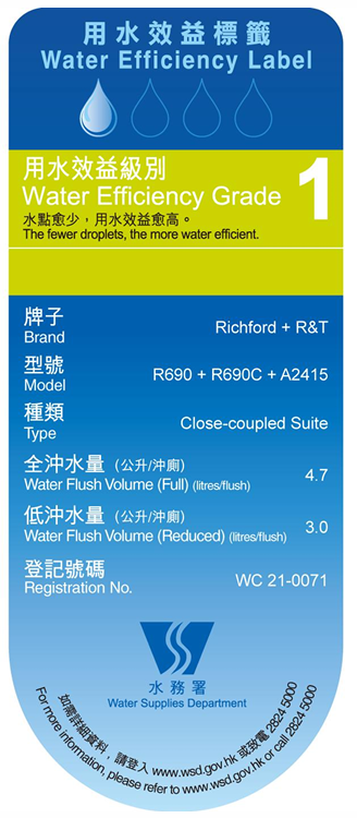 Richford R690 Rimless Universal Trap座廁代表了現代衛浴設備的高標準。其創新的無邊框設計、出色的節水性能、優秀的衛生效果和便捷的安裝維護特性,完美滿足了現代家庭對高品質衛浴產品的需求。無論是日常使用體驗、清潔便利性還是環保節能方面,都展現出極高的產品價值,是追求品質生活的明智之選。
